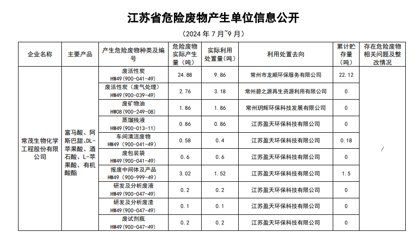 2024年三季度危廢信息公開(kāi)